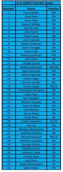2021 Varsity/JV Roster